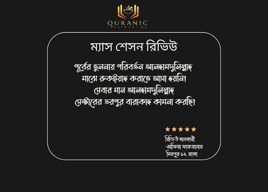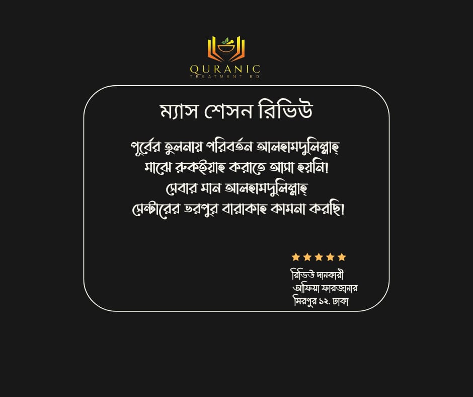 March 25, 2025পূর্বের তুলনায় পরিবর্তন আলহামদুলিল্লাহ্ মাঝে রুকইয়াহ করাতে আসা হয়নি!