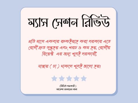 আলহামদুলিল্লাহ্ আপনাদের সার্ভিসে আমি সন্তুষ্ট অনেক অনেক আন্তরিক ও সুন্দরভাবে সেশন সম্পূর্ণ করেছে! প্রতি মাসে ম্যাস সেশন আয়োজন করলে খুবই ভালো হয়, আশা করি এই অনুরুদটা […]
